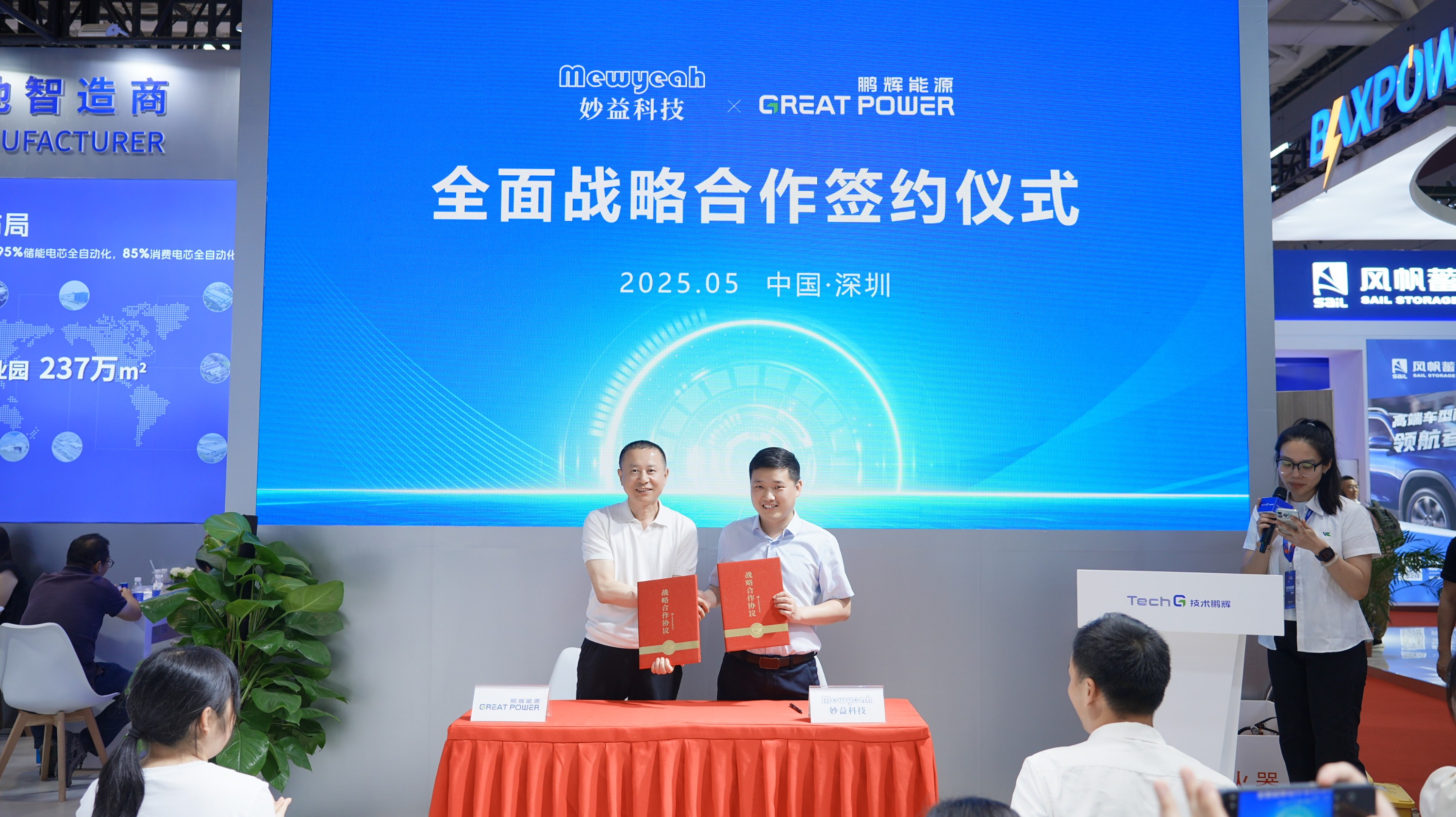 妙益科技總經(jīng)理王亞飛與鵬輝能源總裁甄少強(qiáng)完成簽約