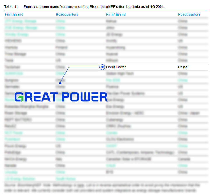 A lista Tier 1 da BNEF é baseada no número de projetos, escala e avanços tecnológicos de uma empresa, tornando-a uma métrica importante para integradores de sistemas de armazenamento de energia, empresas fotovoltaicas e outros parceiros na seleção de colaboradores do setor.